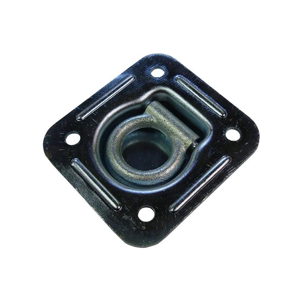 Pan fittings are designed for easy low-profile mounting in trucks or cargo containers. Pan fittings are made of high quality zinc plated steel with a tough polyurethane trim plate collar. The ring is designed to stay centered in the trim collar for easy lift access.