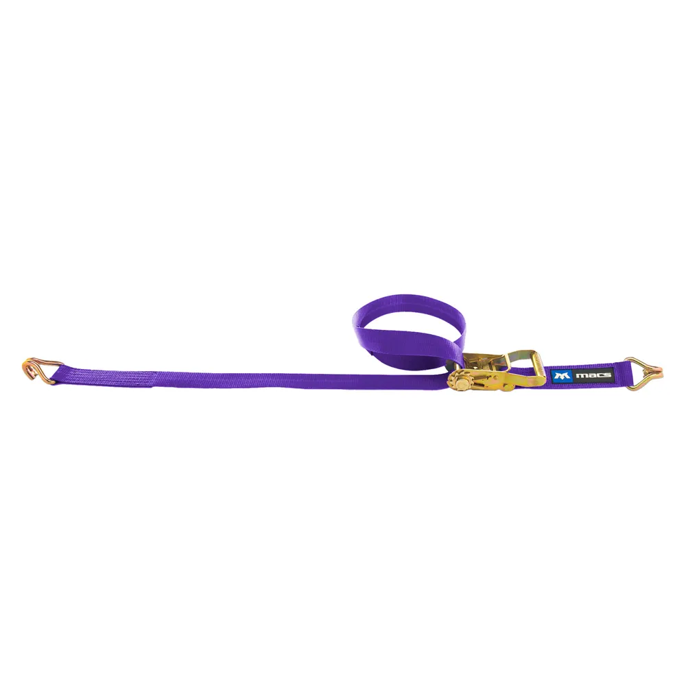 Mac's 2" tie-down straps are well known for their strength and dependability, and there's a good reason why. Our 2" ratchet straps assemblies give you plenty of safety margin because we only use the highest quality strap material. Not only does this significantly reduce chafing and improve UV resistance over "ordinary" straps, our straps are rated for a load capacity of 10,000 lbs.