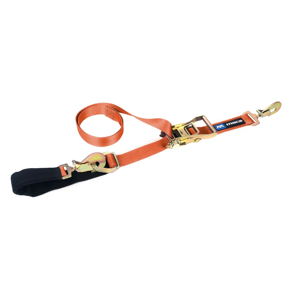 Save money without compromising quality or performance! Combining the axle straps and ratchet straps keeps cost down while maintaining the same high quality Mac's is known for. This single strap is the same as those sold as part of our Super Pack offering and is an excellent replacement for straps that may be worn or deteriorated.