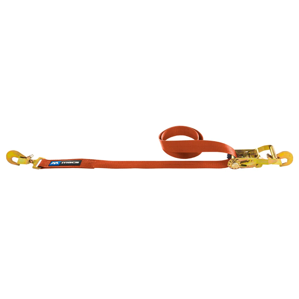 Mac's 2" tie-down straps are well known for their strength and dependability, and there's a good reason why. Our 2" ratchet straps assemblies give you plenty of safety margin because we only use the highest quality strap material. Not only does this significantly reduce chafing and improve UV resistance over "ordinary" straps, our straps are rated for a load capacity of 10,000 lbs.