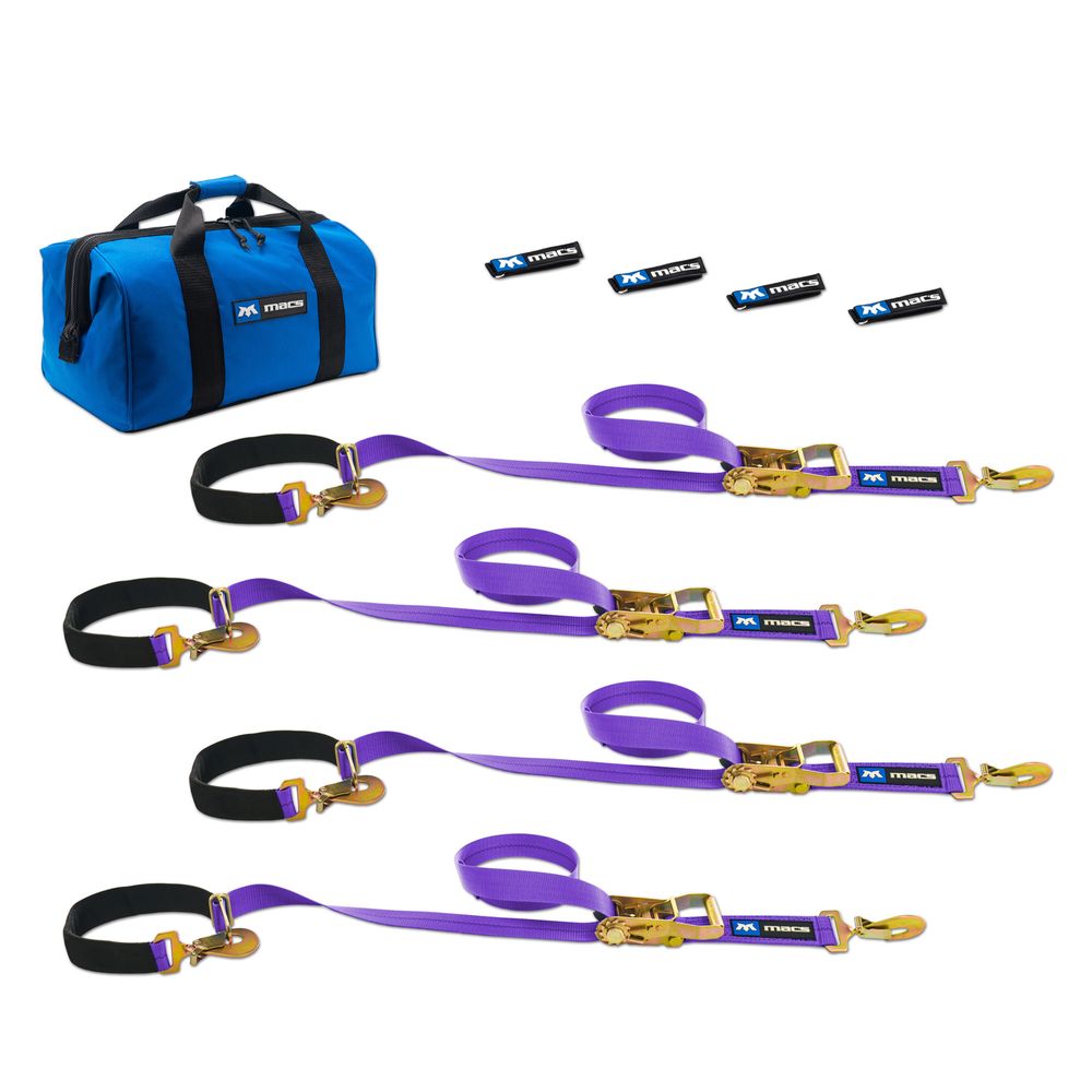 Two 6' & Two 8' Super Pack Tie-Down Strap Kit with Integrated Axle Straps, Sewn Fixed Ends - Purple
