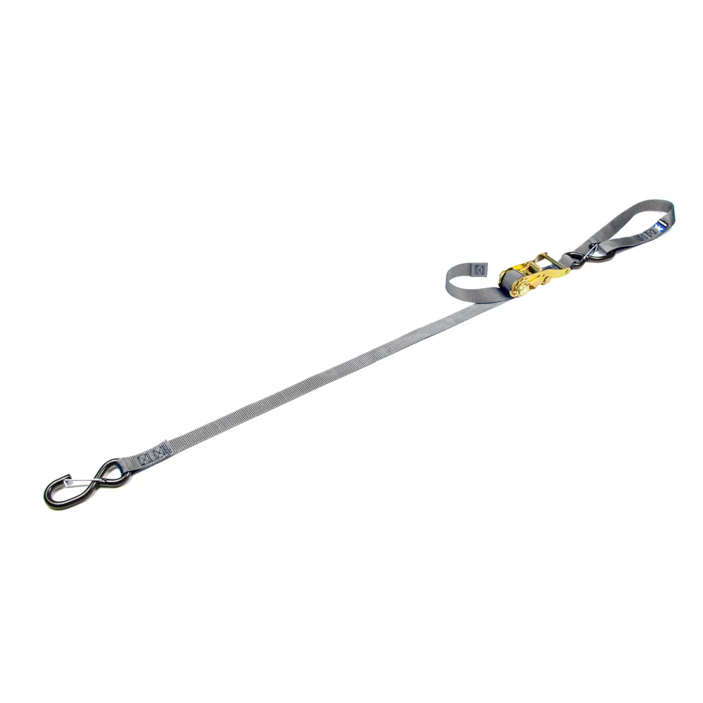 1" x 6' Motorcycle Ratchet Tie-Down Strap with Integrated Soft Loop, S-Hook & Keeper - Silver