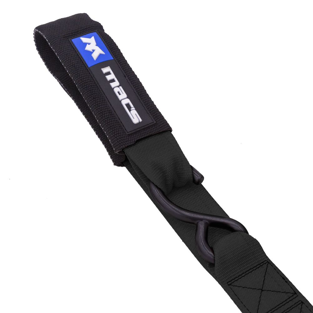 During construction of each strap, we sew all ends using the highest stitch count in the industry. You can see this in our characteristic "double box" stitch pattern that ensures maximum tear resistance. After tightening your straps, tuck away the excess with the included Mac's strap wraps. Each strap band is made of "hook-and-loop" lined rugged strapping, to keep your ends from flapping in the breeze. When you arrive at your destination, use the strap bands to stow your tie-downs neatly in the included Mac's large canvas storage bag.