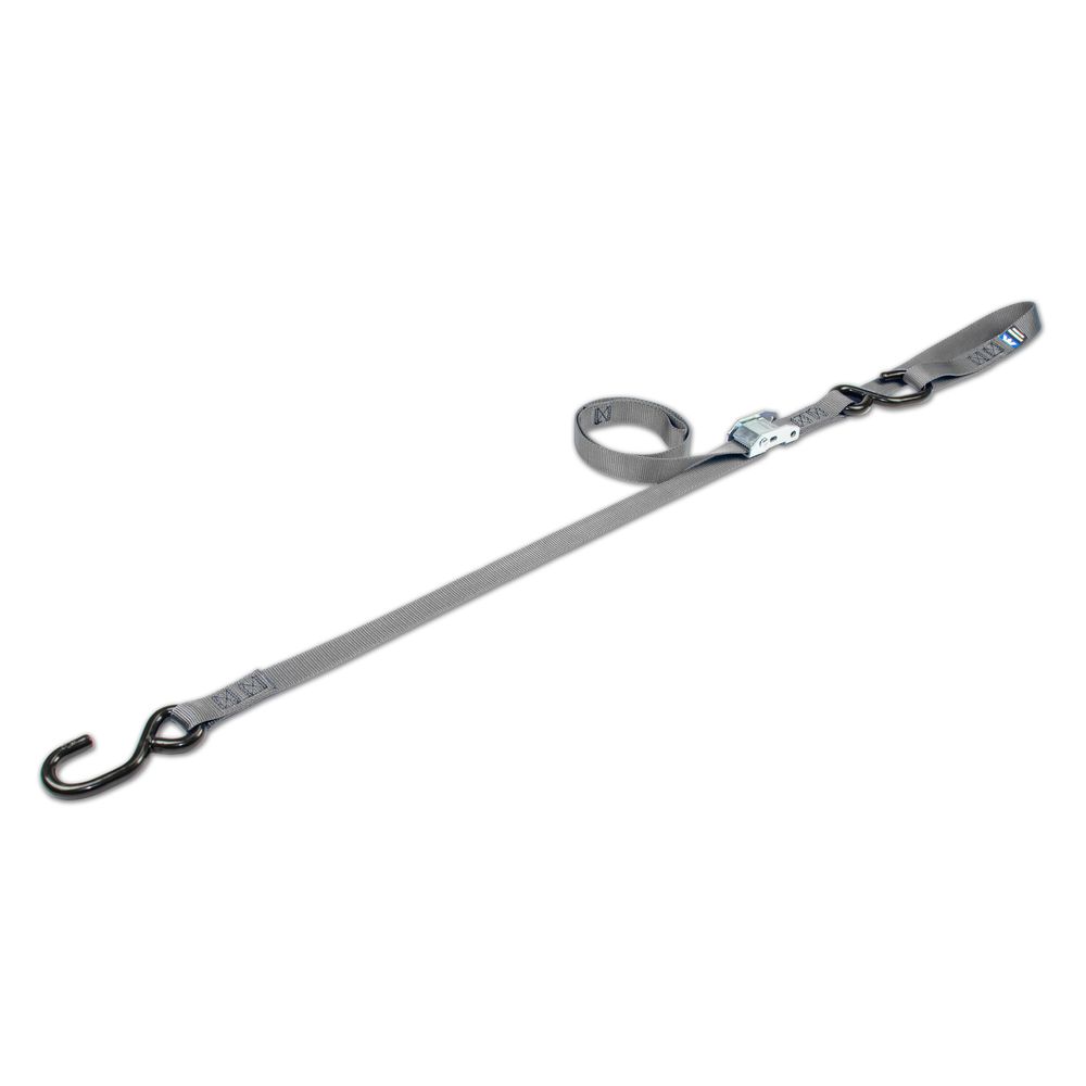 1" x 10' Motorcycle Cam Tie-Down Strap with Integrated Soft Loop, S-Hook - Silver