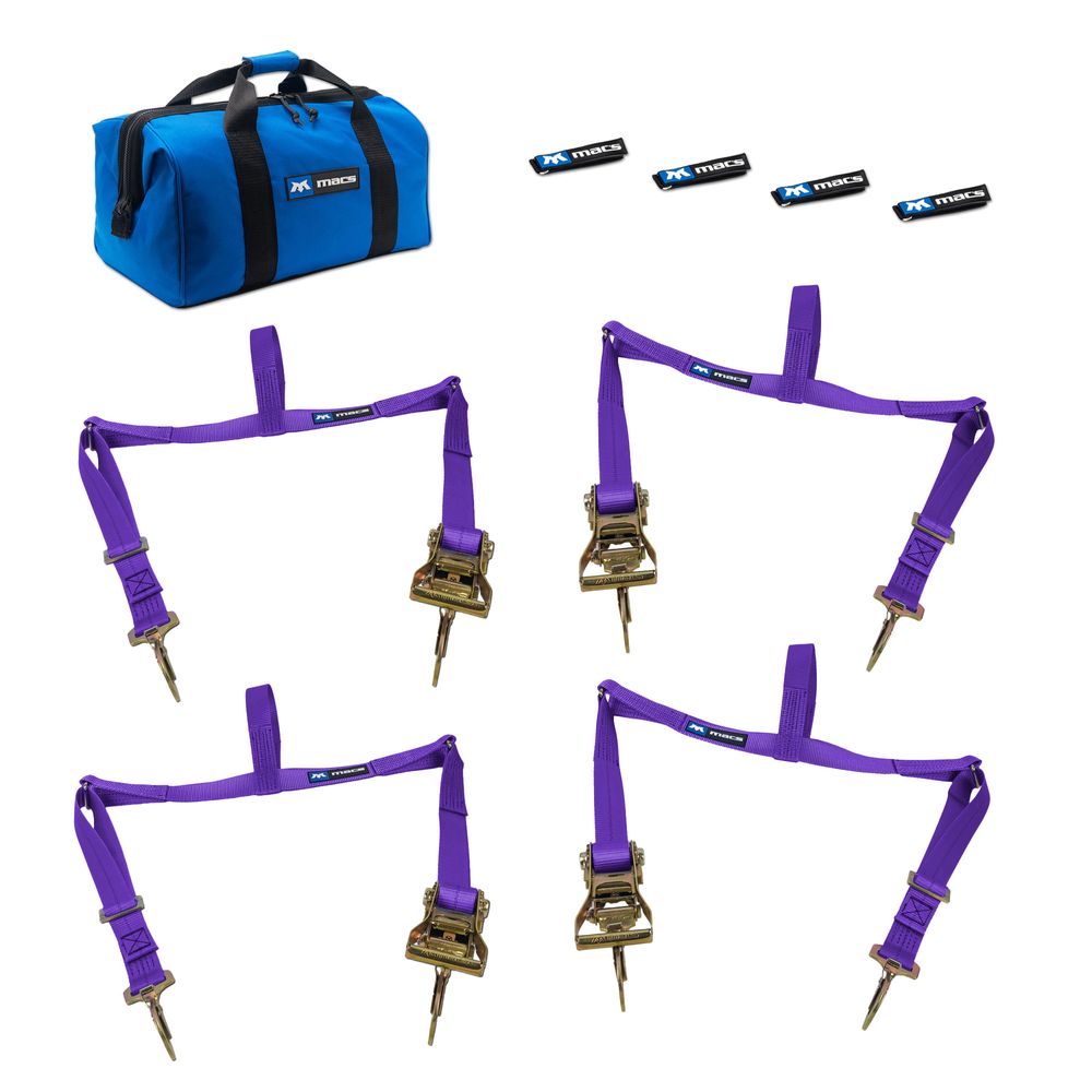 The adjustable design means you can still use it if you choose to run the OEM tires for a while before deciding to upgrade to a different or larger tire. A simple adjustment allows you to use this on those smaller stock tires as well as on a larger aftermarket choice. Your UTV Tire Net Pack comes with Mac's Strap Wraps. After securing your vehicle, use these to neatly hold excess strapping in place and store them in the included bag.