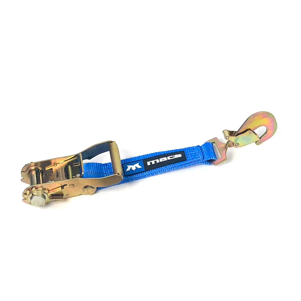 This 2" ratchet strap assembly is rated at a 10,000 lb. load capacity, giving you plenty of safety margin. Only the highest quality strap material is used, which significantly improves chafing and UV resistance over "standard" straps.