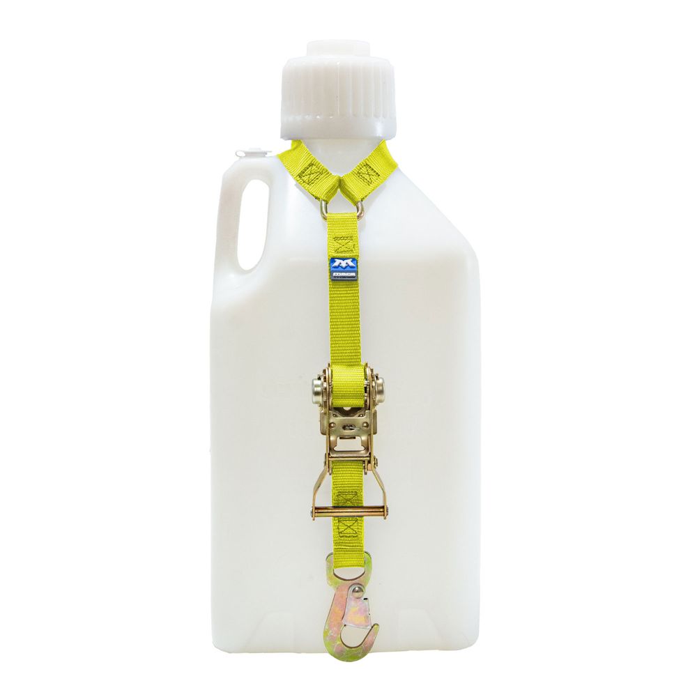 This 1" ratchet fuel jug strap has the same high strength as our standard 1" straps and is the perfect way to secure fuel jugs, utility jugs and dump cans for transport. Designed to work with multiple mounting options, secure this strap to track systems, in truck bed or trailers, or onto fuel jug mounts.