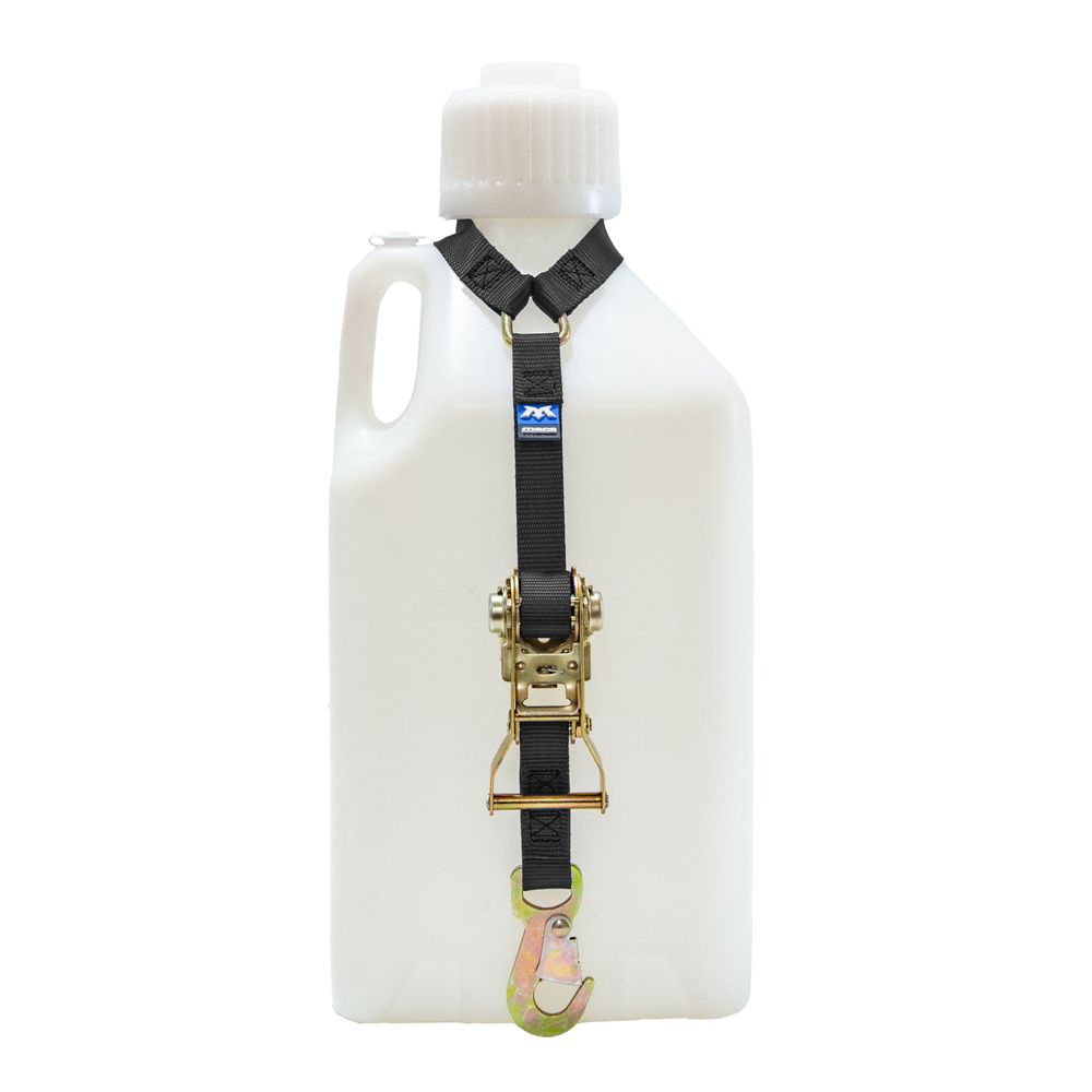 This 1" ratchet fuel jug strap has the same high strength as our standard 1" straps and is the perfect way to secure fuel jugs, utility jugs and dump cans for transport. Designed to work with multiple mounting options, secure this strap to track systems, in truck bed or trailers, or onto fuel jug mounts.
