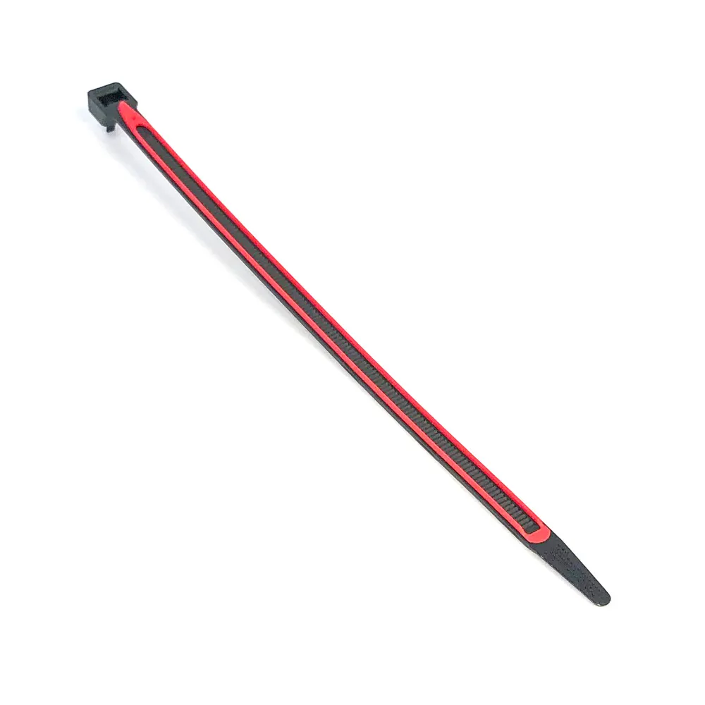 Originally designed for aviation and racing, these ties feature UV-protected nylon and a rubberized liner that make them great for high-heat, high-vibration applications. The patented rubber lining prevents the need to over-tighten a zip tie just for a secure fit, and helps eliminate movement that damages wires, paint, or structural components. You won't have to spend any more money on separate cushioning materials. They function much like a tradition zip tie but feature a unique releasable tab that allows you to either reposition the tie or remove it and use it again in a different application.