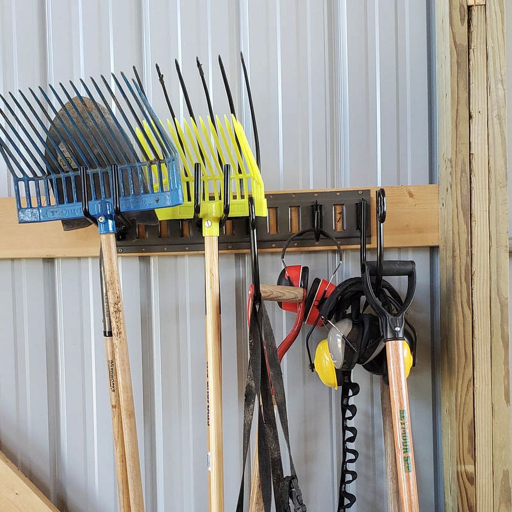 - Hang rakes and shovels on your E-track