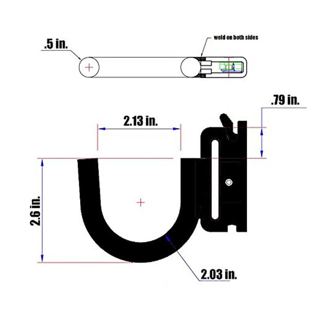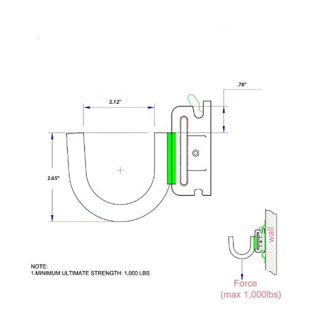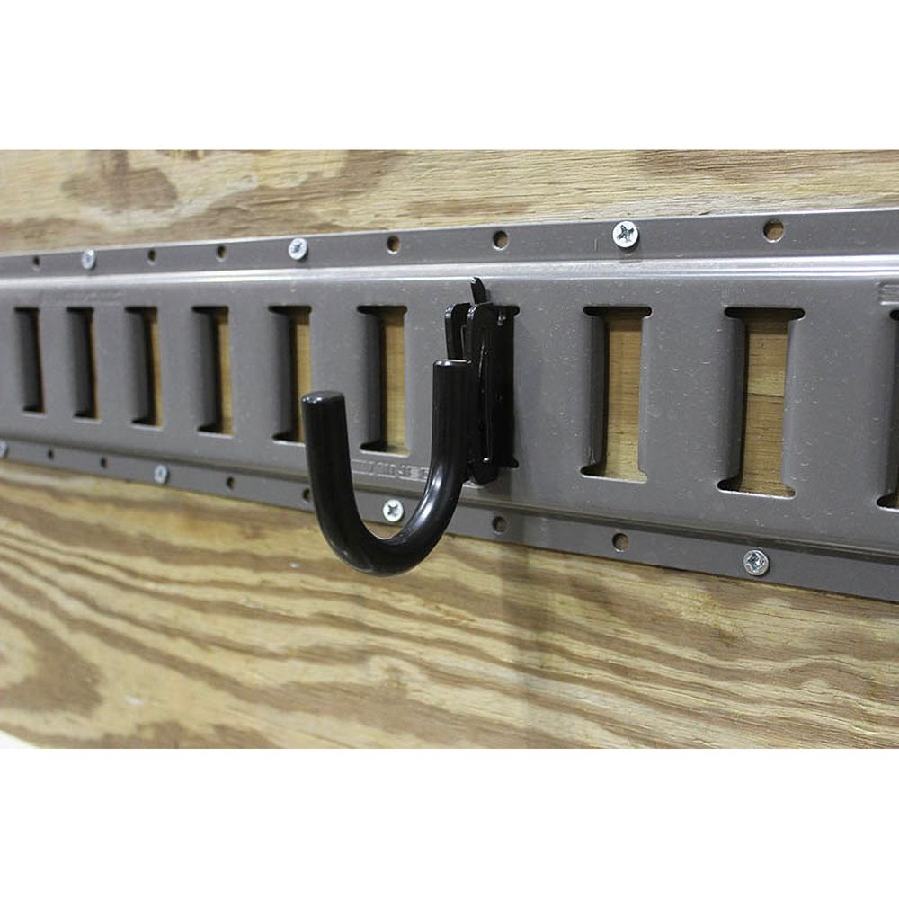 The hook snaps directly into E-track, and offers a fixed point for hanging objects such as extension cords, cables, tools, and much more! The hook measures 2.25" (4.125" from track to edge of hook).
