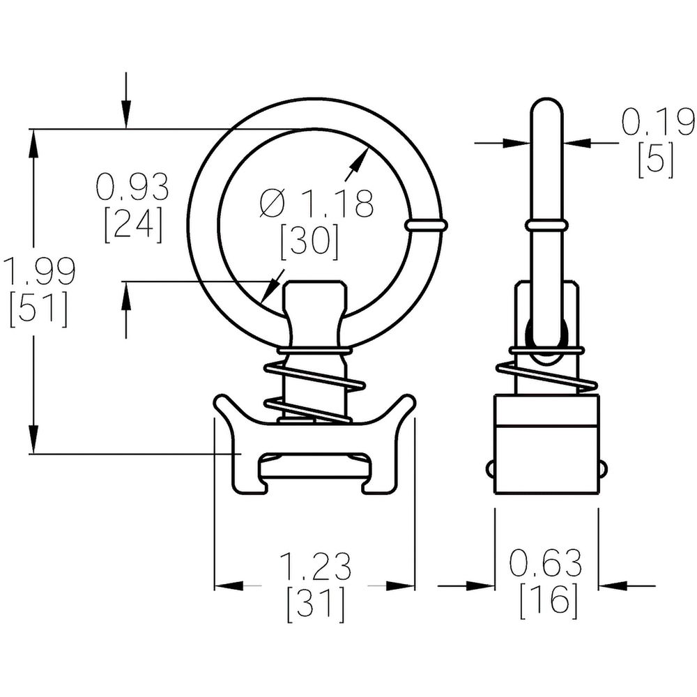 L-Track Single Stud Fitting with Round Ring - Black - WLL 1,333 lb.