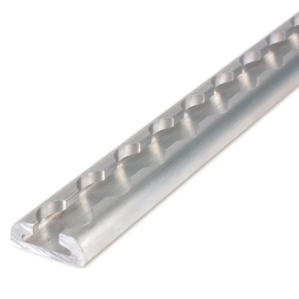 Track does not include mounting holes. We recommend attaching the track to your structure using 1/4" Stainless Steel countersink fasteners on 6" spacing. When determining fastener length, include 1/8-inch track thickness to the thickness of the nut, washer and structure. Ensure fastener is sufficient length to engage the entire thickness of the nut when installed. For pre-drilled tracking and mounting hardware, check out our VersaTie Track Kits.